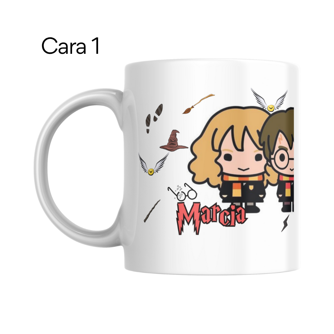 Taza Personalizada Harry, Ron y Hermione Kawaii con Nombre - Cerámica 350ml